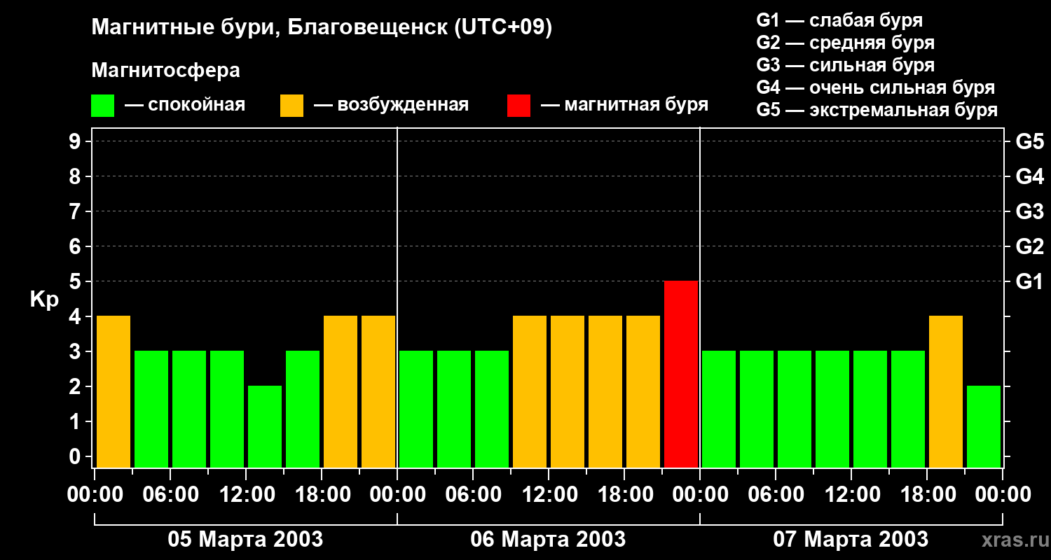Магнитные бури в Благовещенске — 7 марта 2003 года