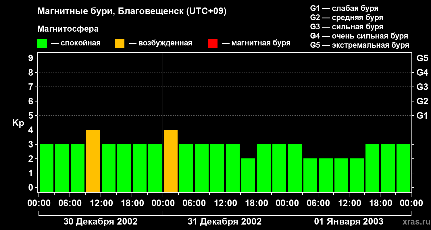 Магнитные бури в Благовещенске — 1 января 2003 года