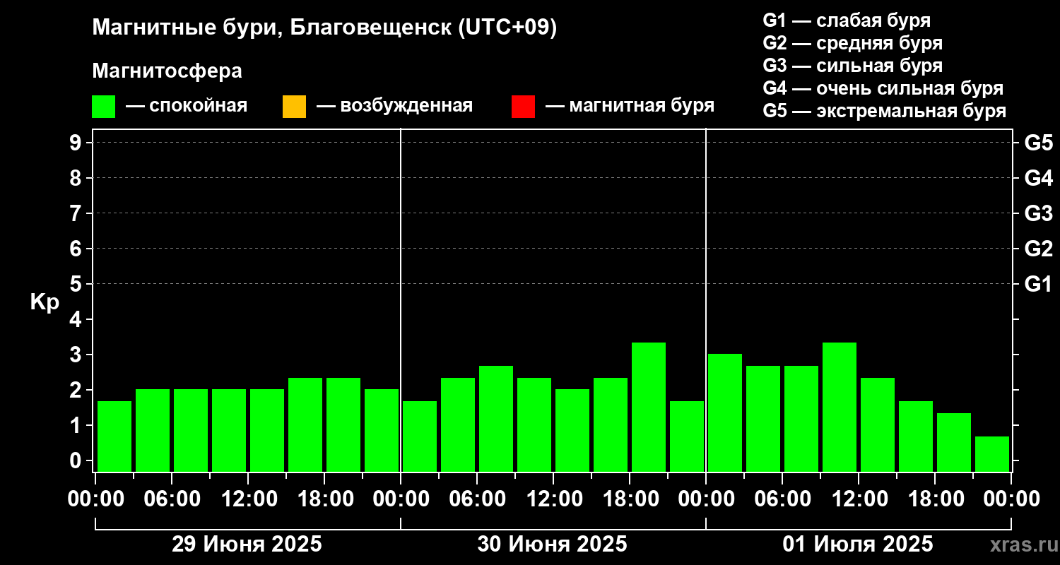 Магнитные бури в Благовещенске 1 июля 2025 года