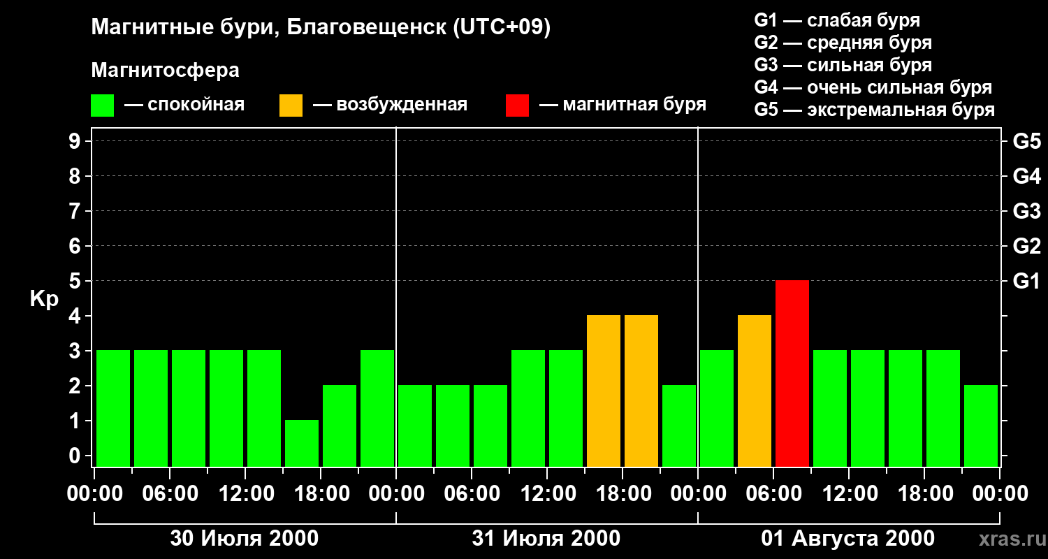 Магнитные бури в Благовещенске 1 августа 2000 года