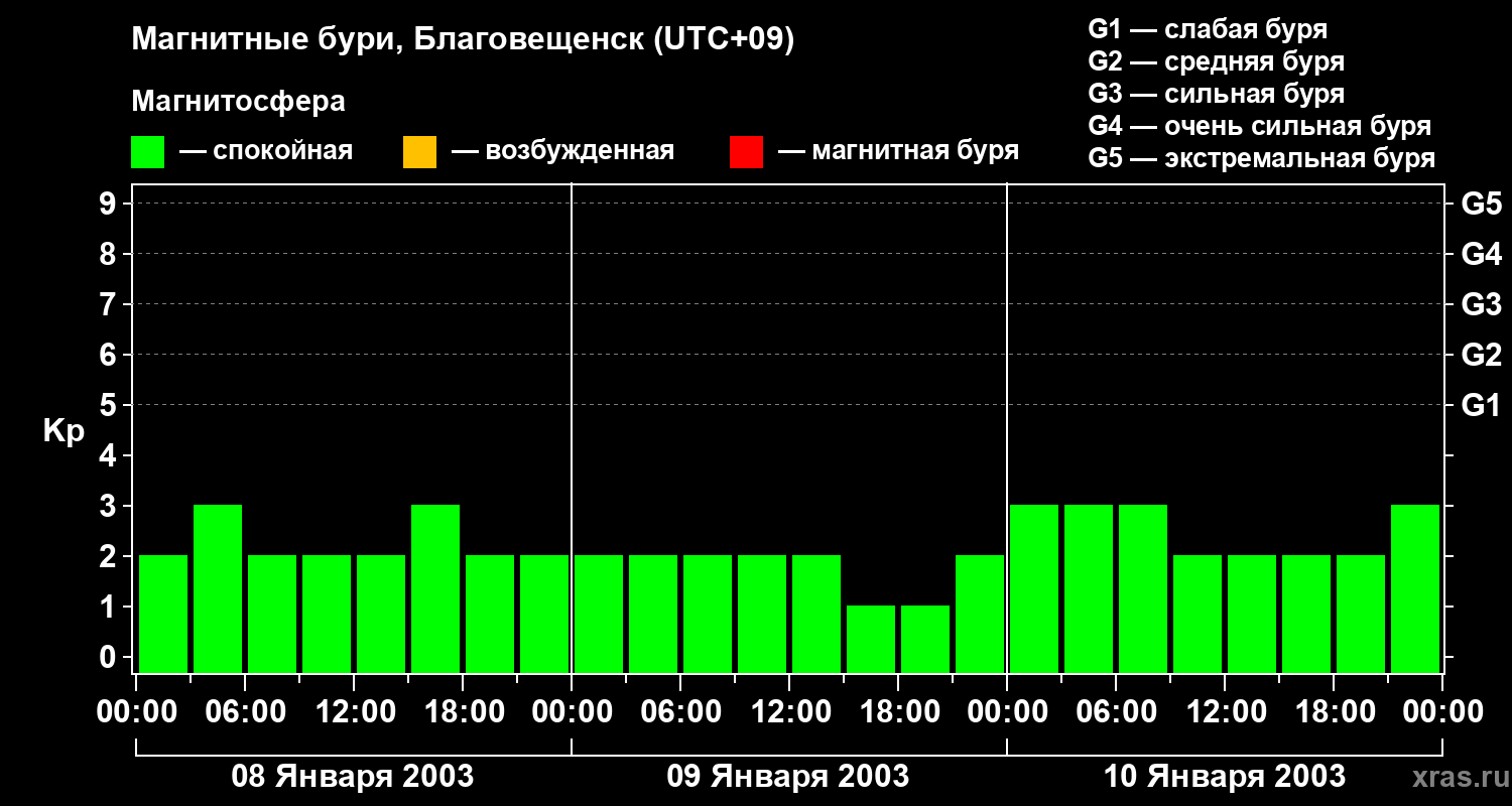 Магнитные бури в Благовещенске — 10 января 2003 года