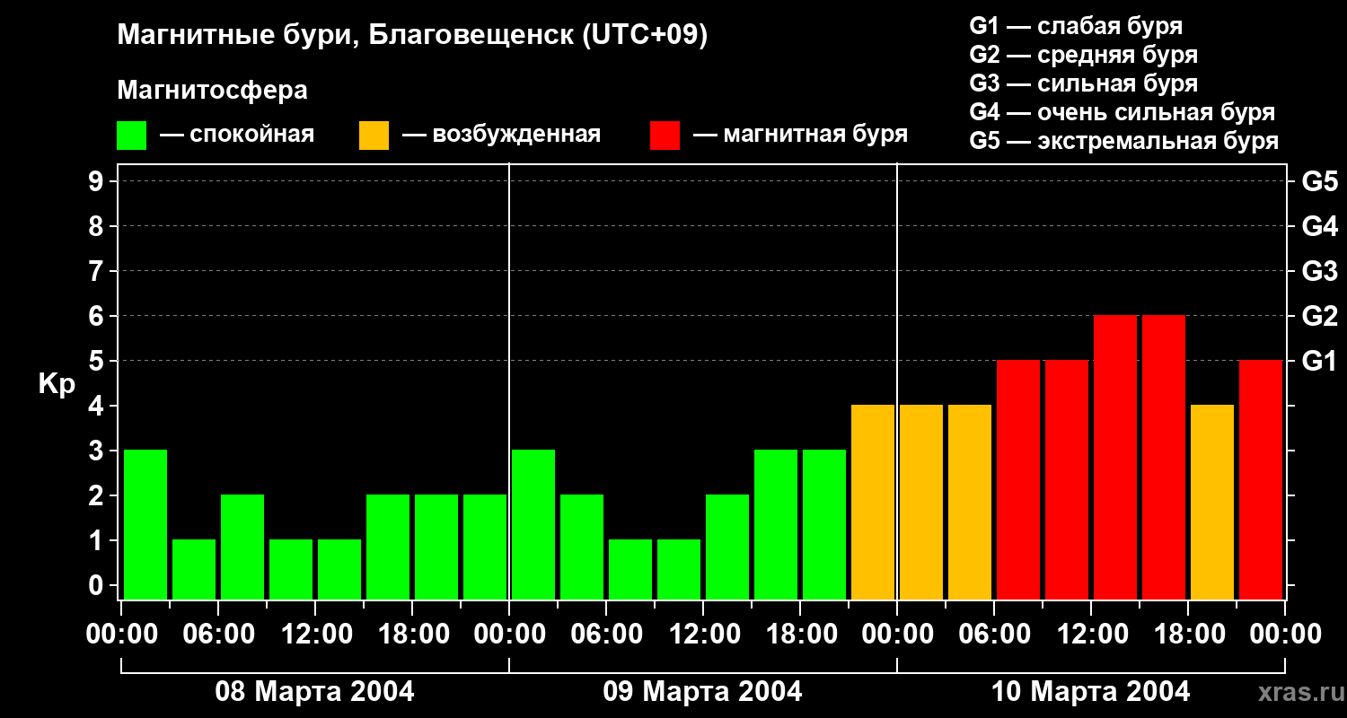 Магнитные бури в Благовещенске — 10 марта 2004 года