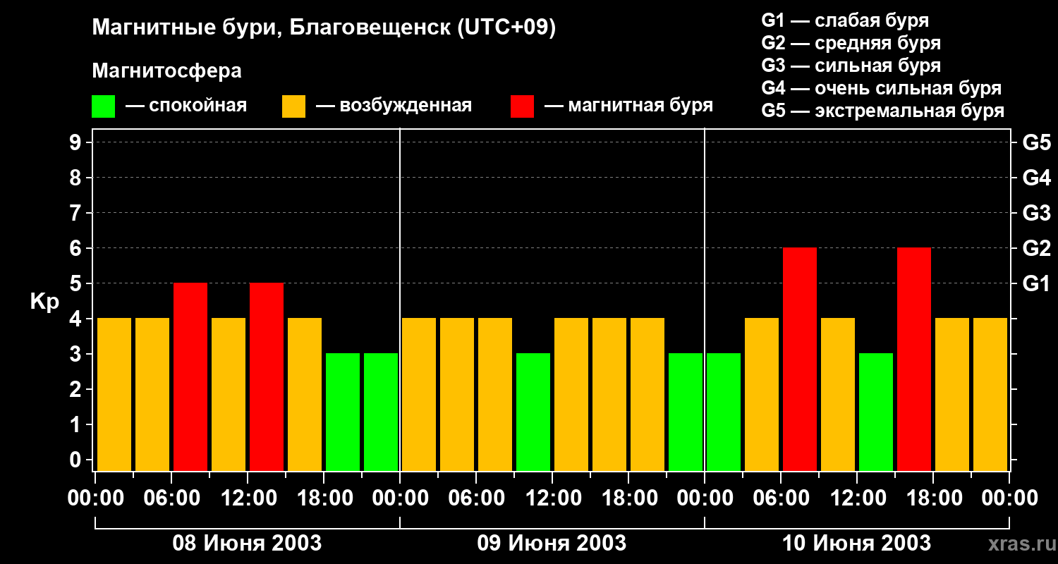 Магнитные бури в Благовещенске — 10 июня 2003 года