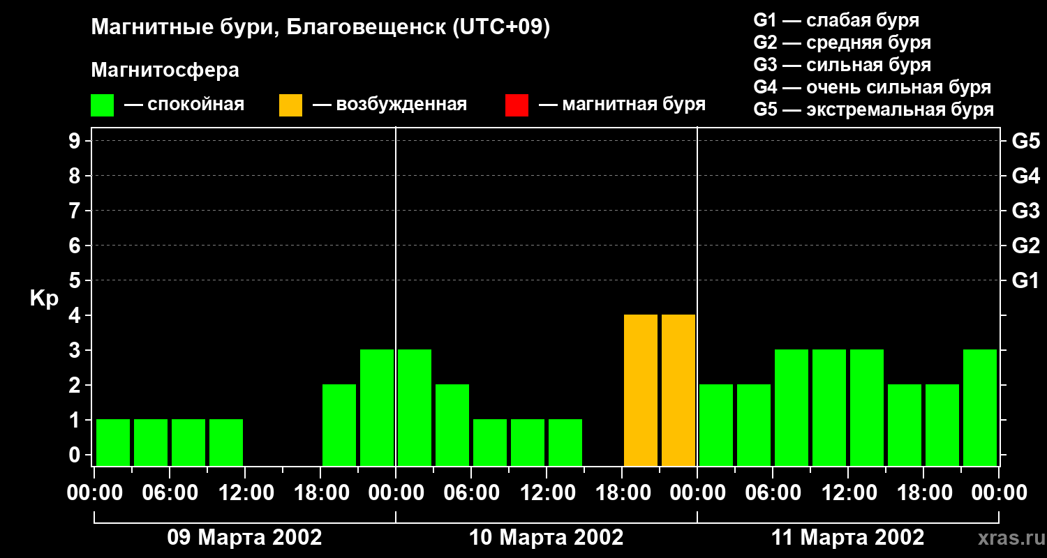 Магнитные бури в Благовещенске — 11 марта 2002 года