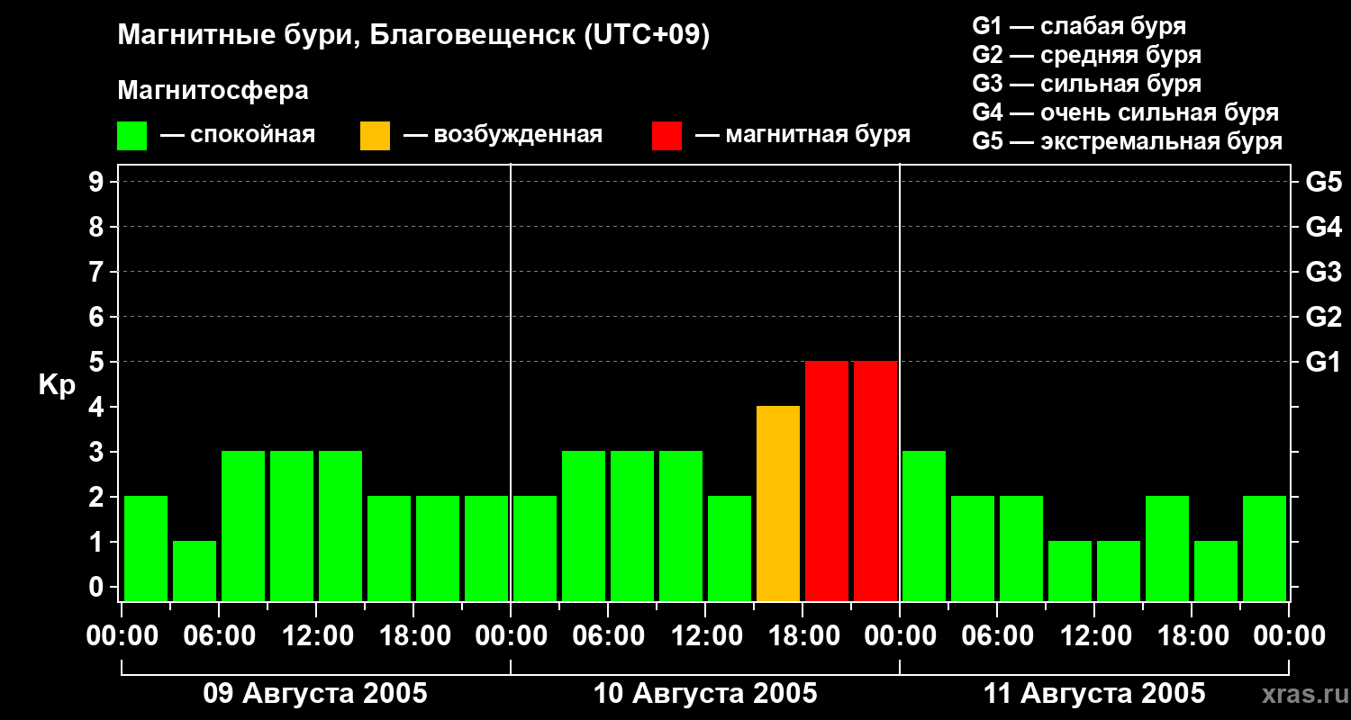 Магнитные бури в Благовещенске — 11 августа 2005 года