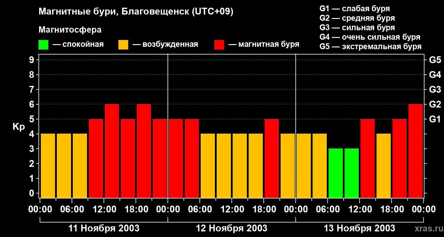 Магнитные бури в Благовещенске — 13 ноября 2003 года