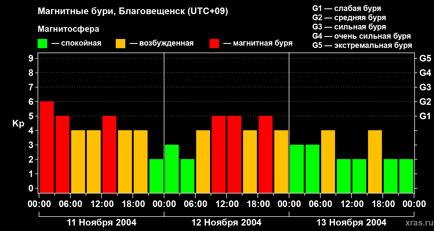 Магнитные бури в Благовещенске — 13 ноября 2004 года