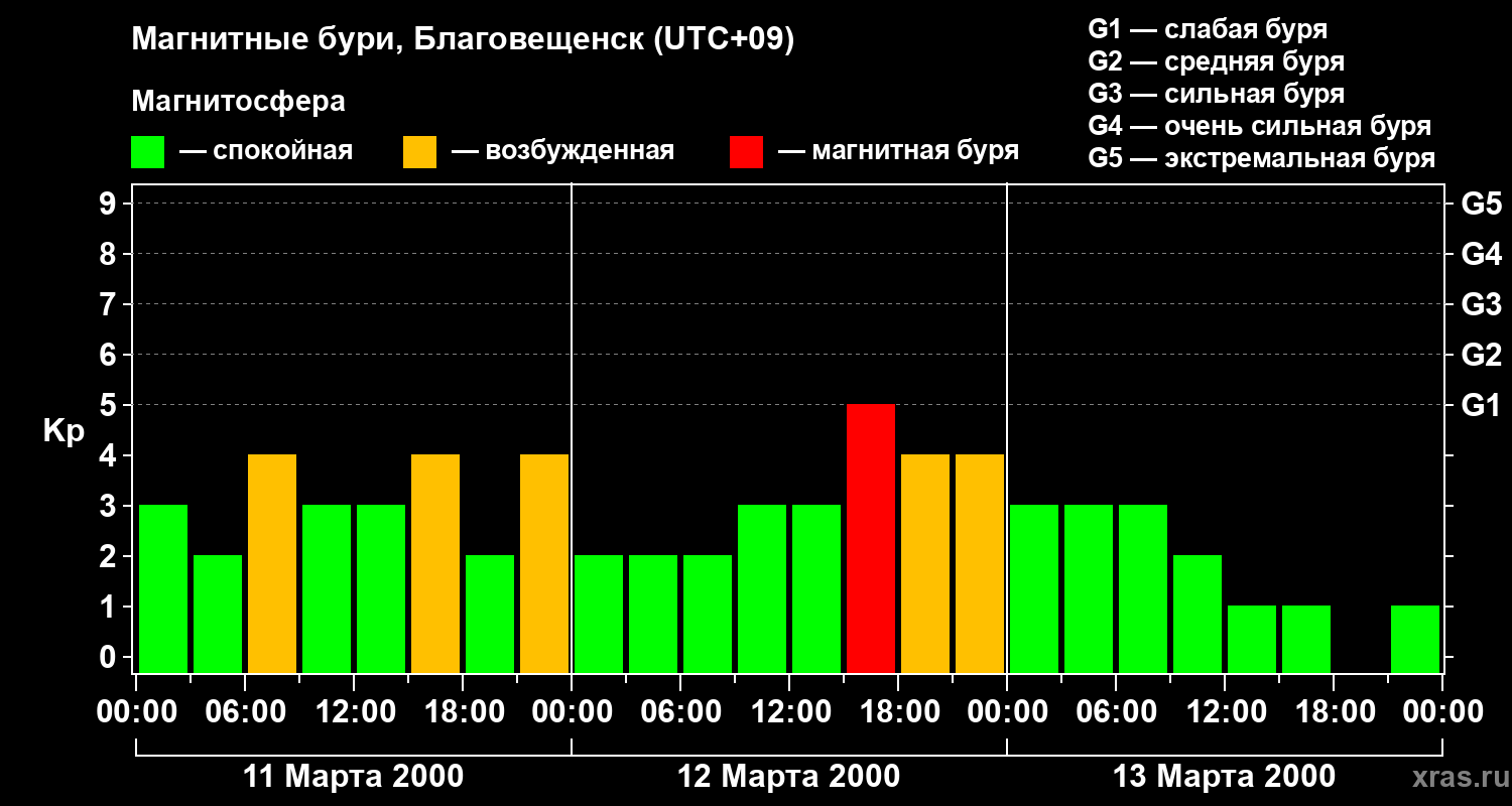 Магнитные бури в Благовещенске — 13 марта 2000 года