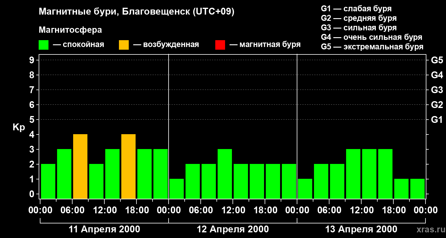 Магнитные бури в Благовещенске — 13 апреля 2000 года