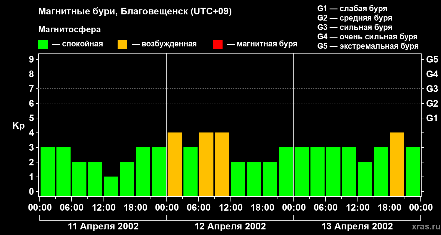 Магнитные бури в Благовещенске — 13 апреля 2002 года