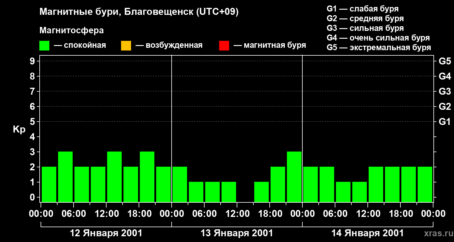 Магнитные бури в Благовещенске — 14 января 2001 года