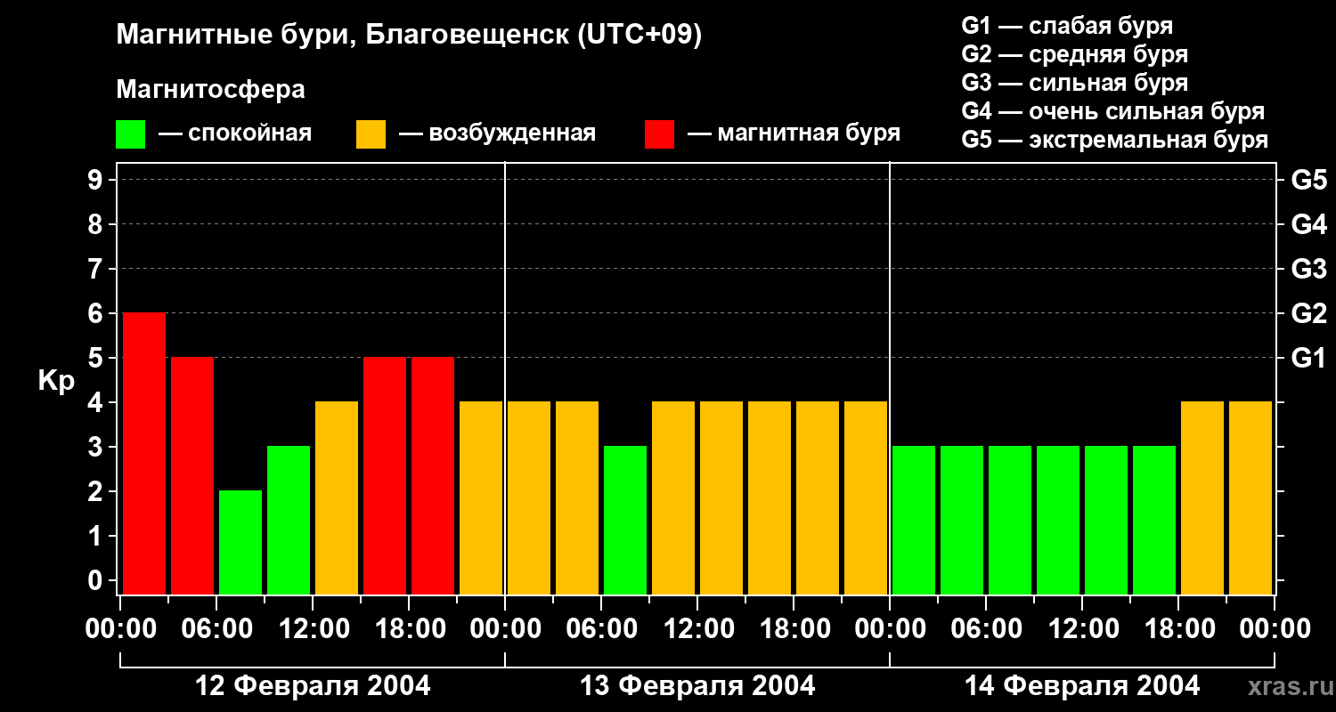 Магнитные бури в Благовещенске — 14 февраля 2004 года