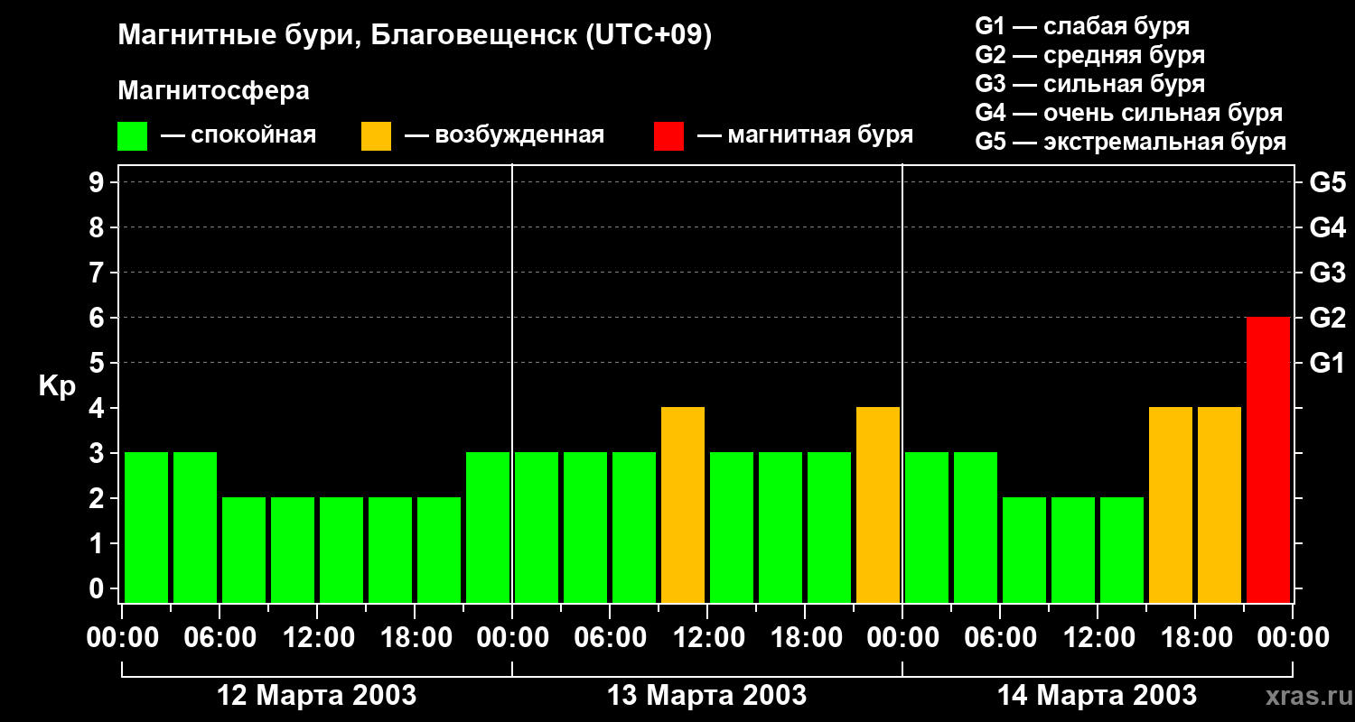 Магнитные бури в Благовещенске — 14 марта 2003 года