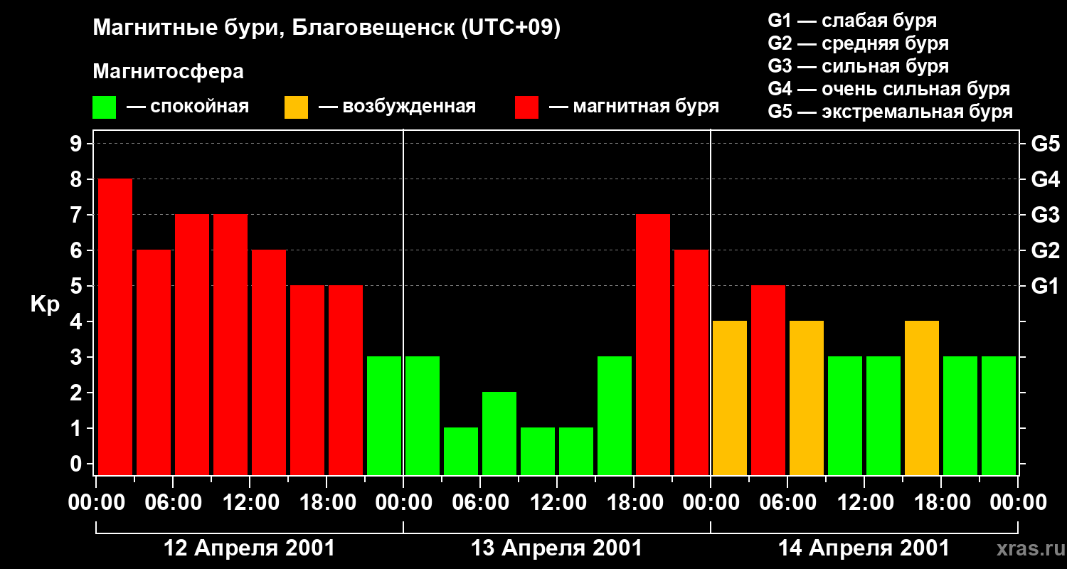 Магнитные бури в Благовещенске — 14 апреля 2001 года