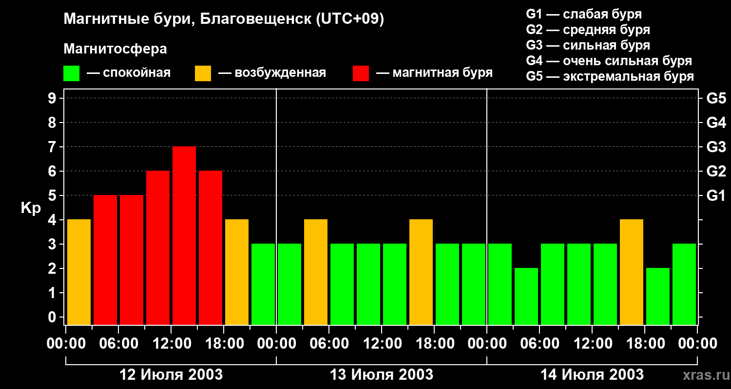Магнитные бури в Благовещенске — 14 июля 2003 года