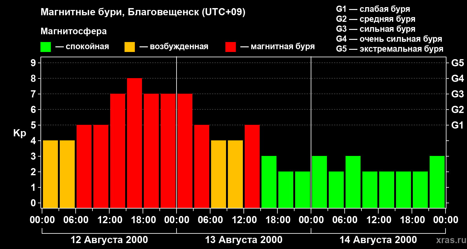 Магнитные бури в Благовещенске — 14 августа 2000 года