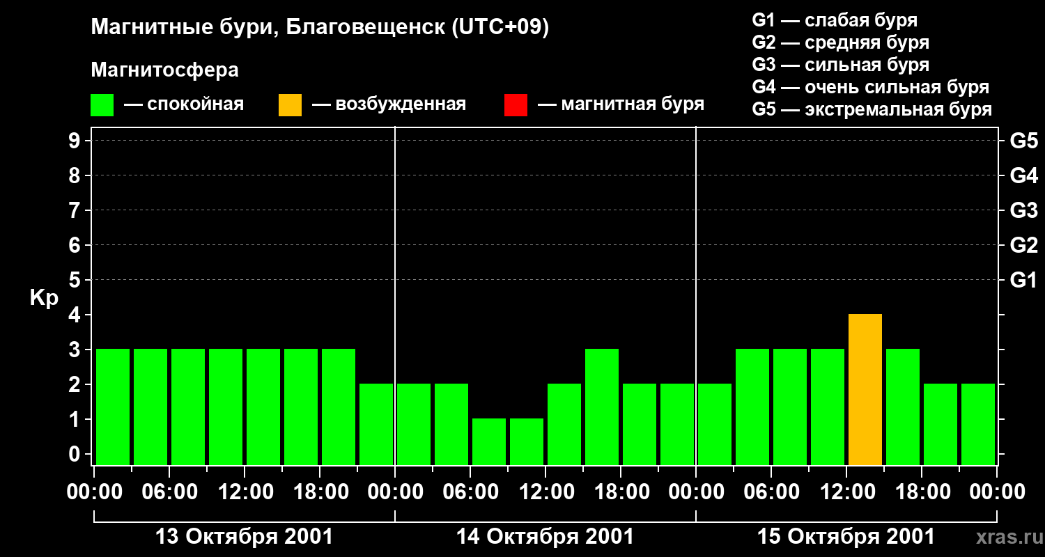 Магнитные бури в Благовещенске — 15 октября 2001 года