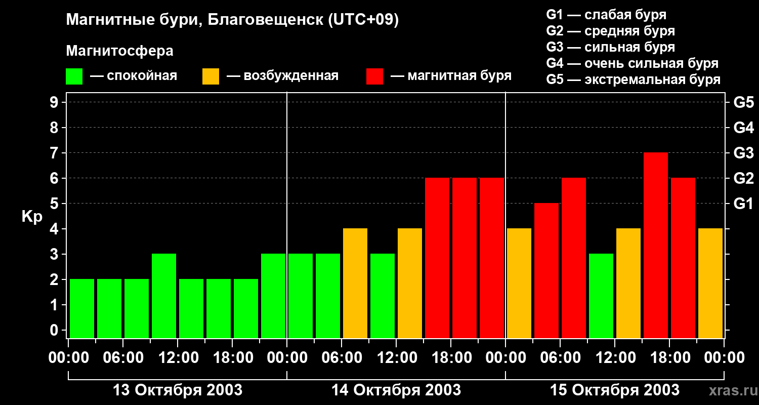 Магнитные бури в Благовещенске — 15 октября 2003 года