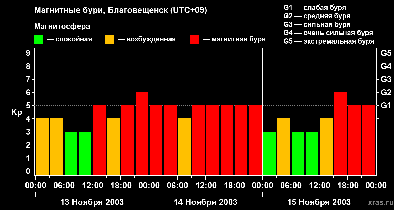 Магнитные бури в Благовещенске — 15 ноября 2003 года