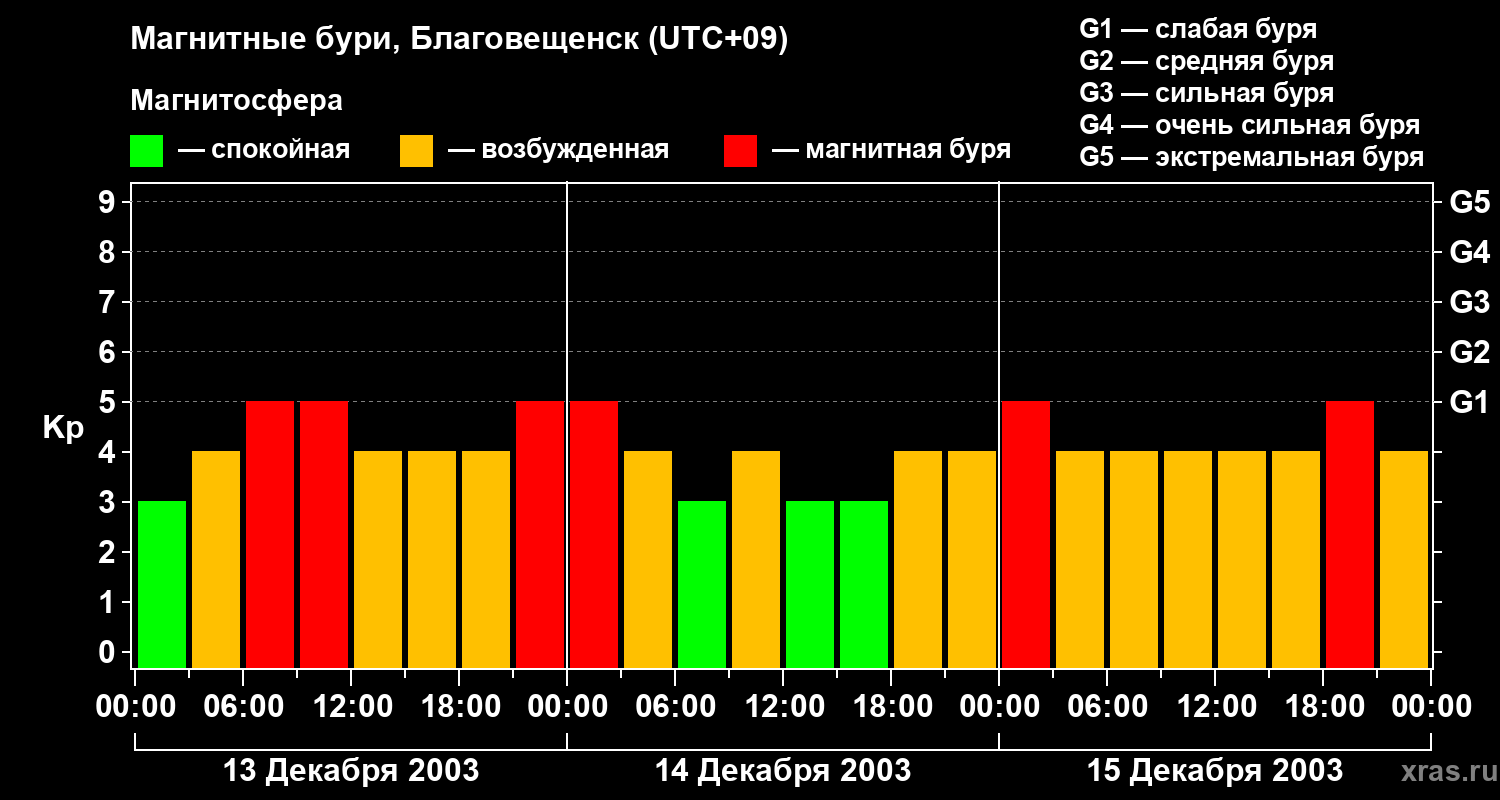 Магнитные бури в Благовещенске — 15 декабря 2003 года