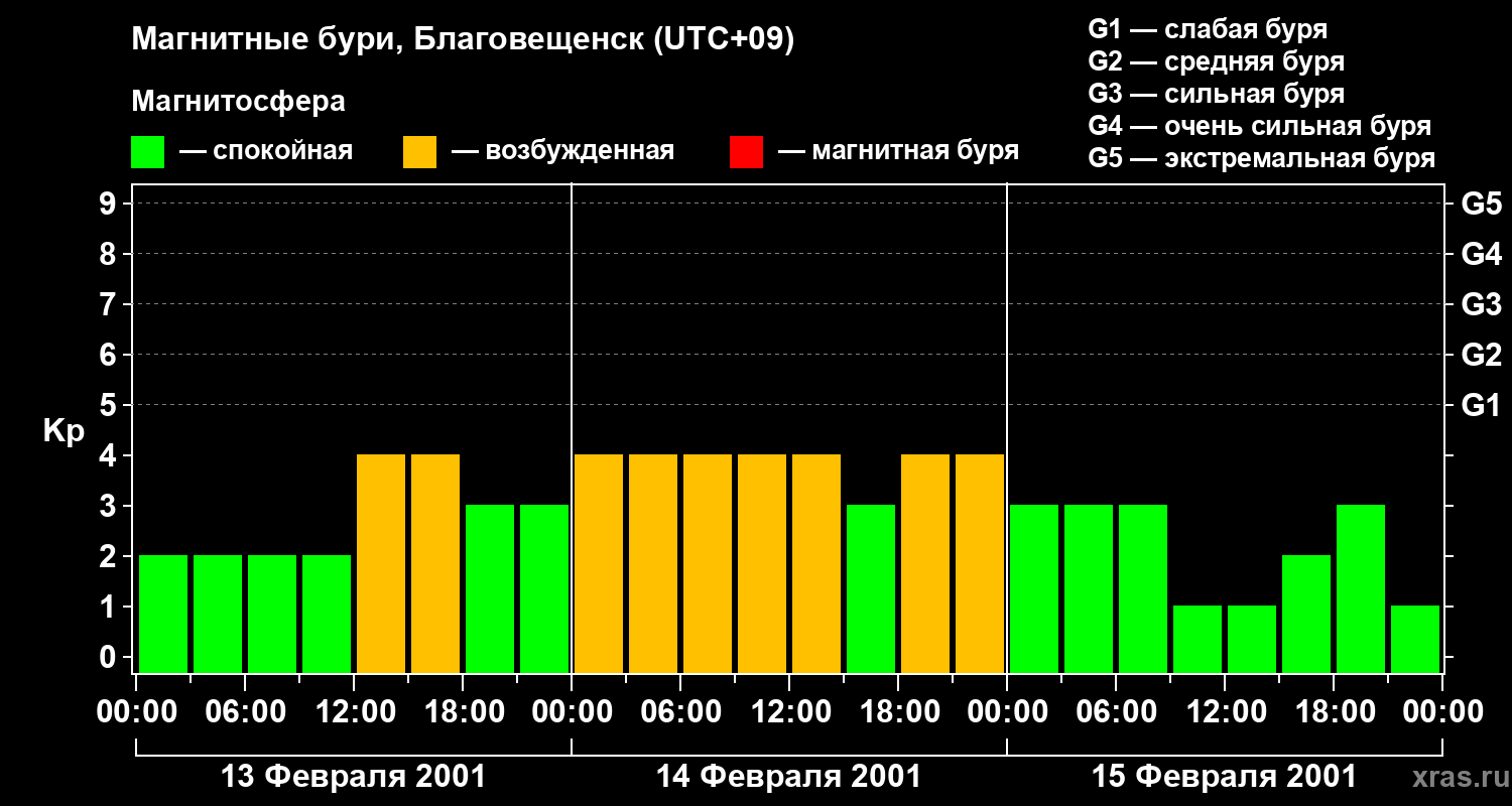 Магнитные бури в Благовещенске — 15 февраля 2001 года