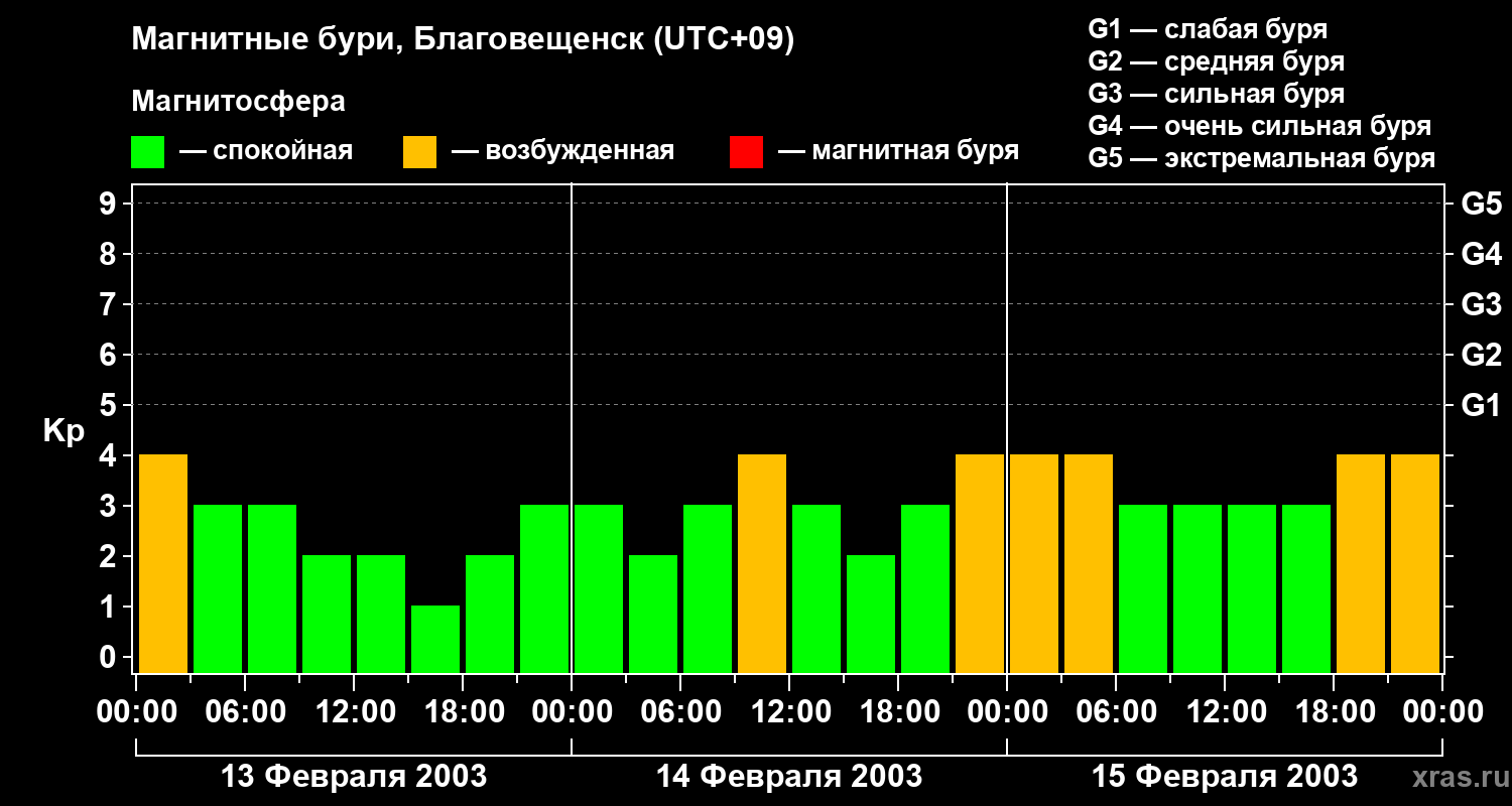 Магнитные бури в Благовещенске — 15 февраля 2003 года