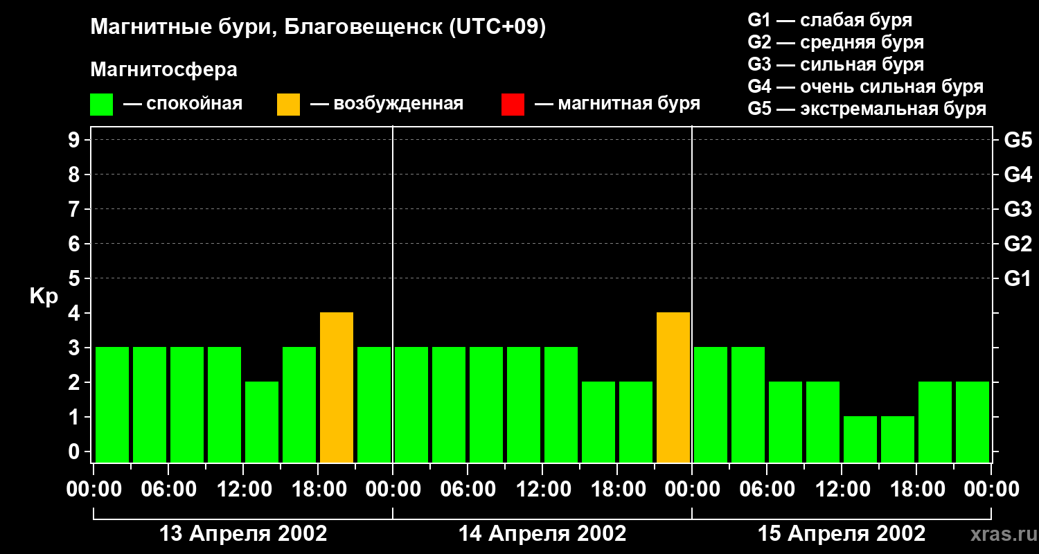 Магнитные бури в Благовещенске — 15 апреля 2002 года