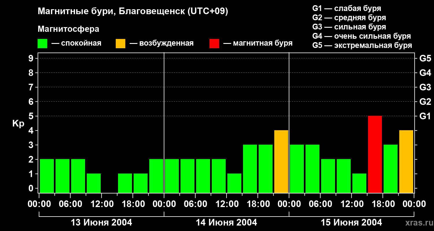 Магнитные бури в Благовещенске — 15 июня 2004 года