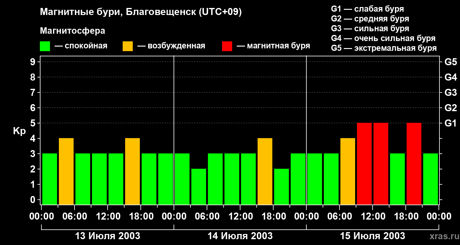 Магнитные бури в Благовещенске — 15 июля 2003 года