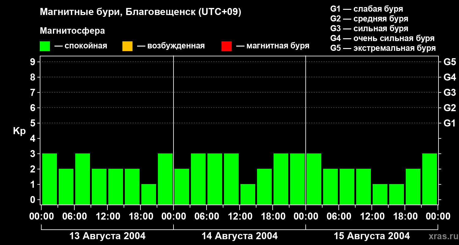 Магнитные бури в Благовещенске — 15 августа 2004 года