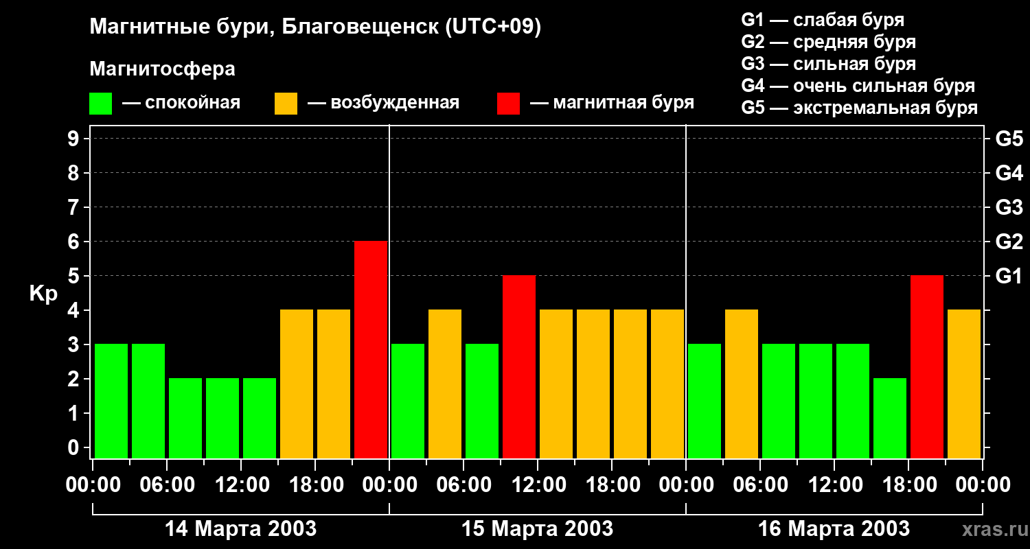 Магнитные бури в Благовещенске — 16 марта 2003 года