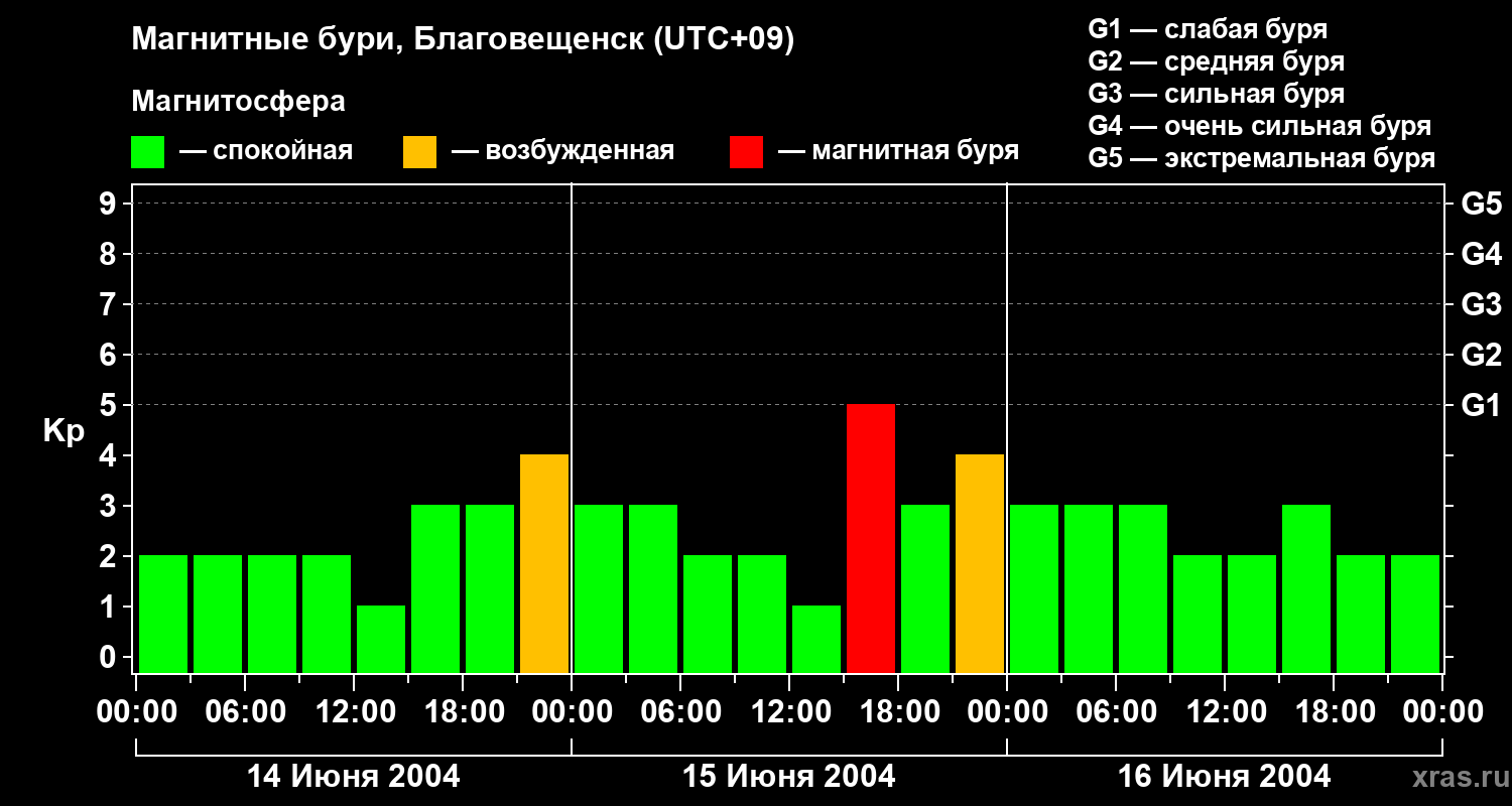 Магнитные бури в Благовещенске — 16 июня 2004 года
