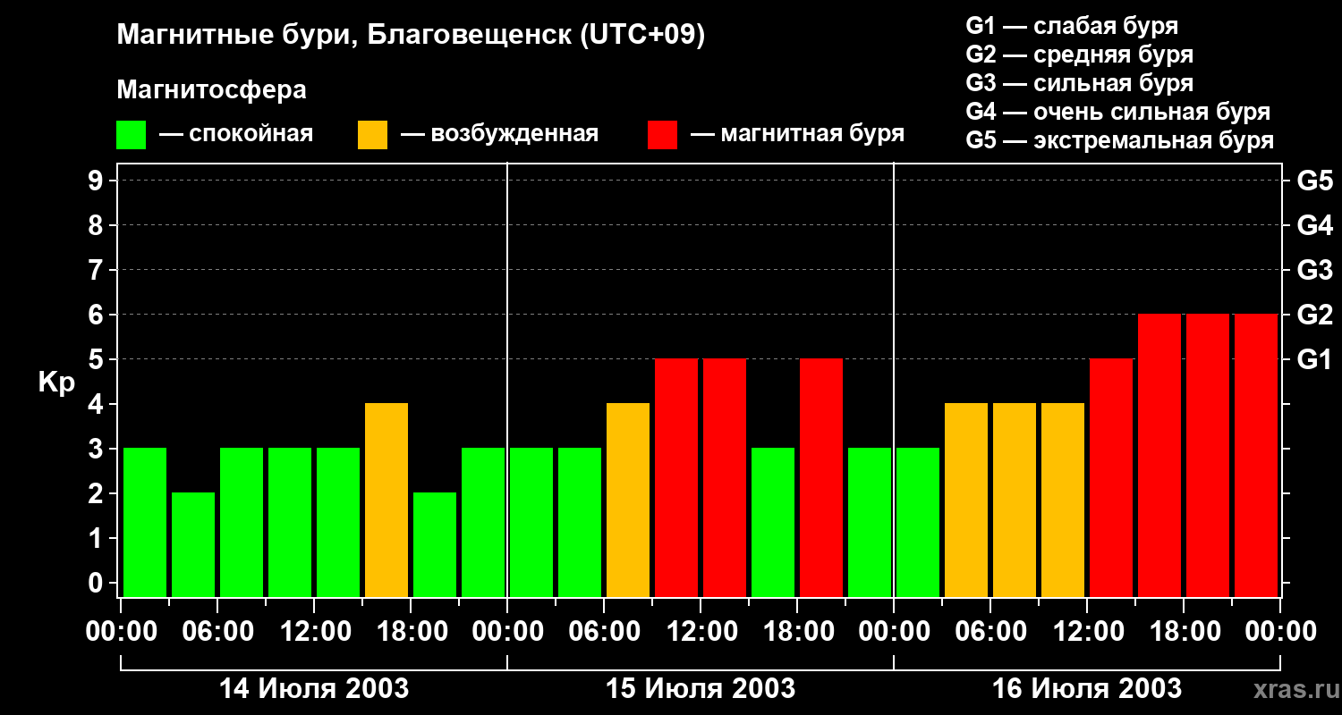 Магнитные бури в Благовещенске — 16 июля 2003 года