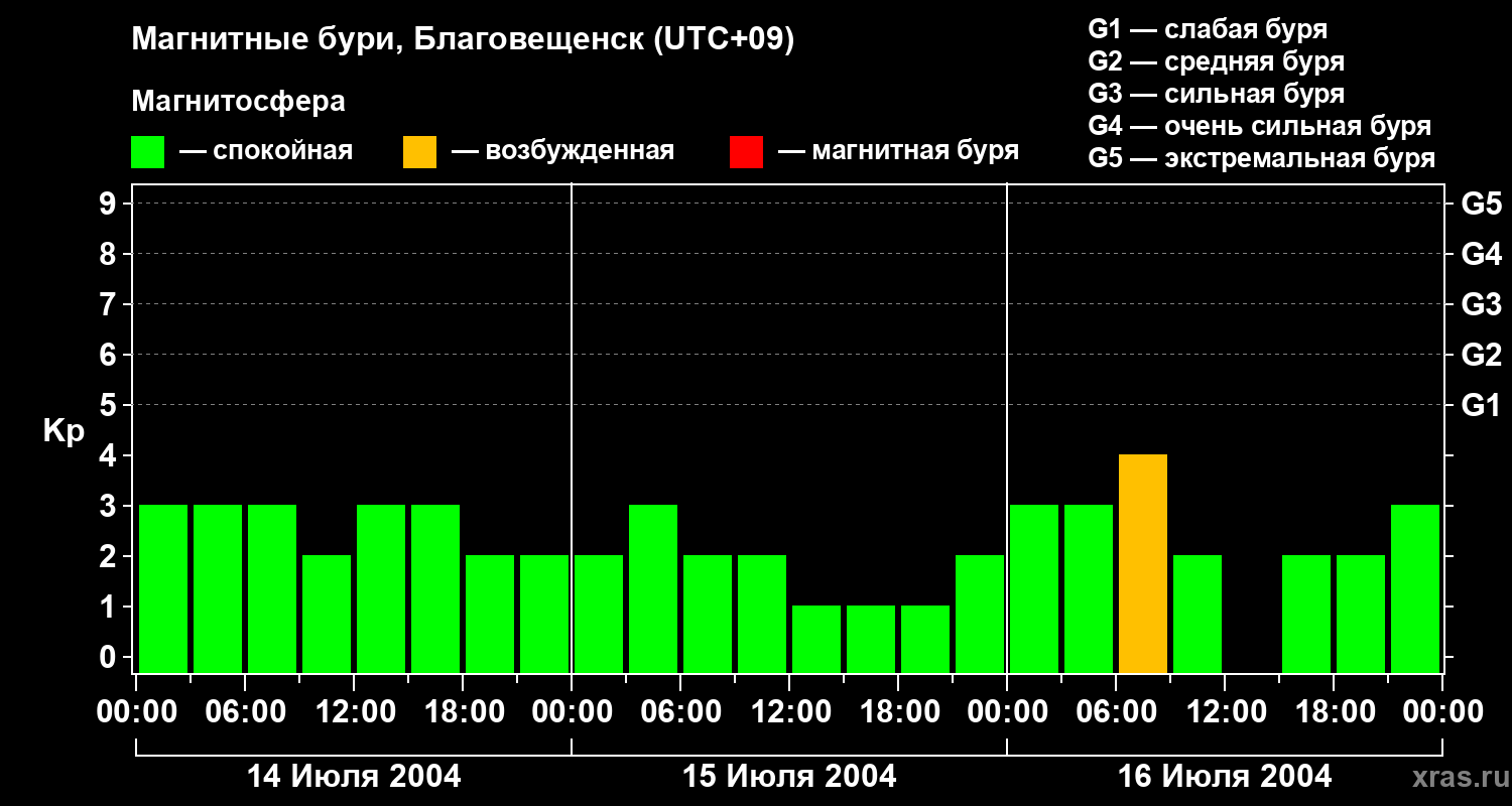 Магнитные бури в Благовещенске — 16 июля 2004 года