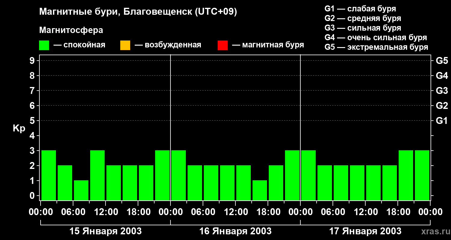 Магнитные бури в Благовещенске — 17 января 2003 года