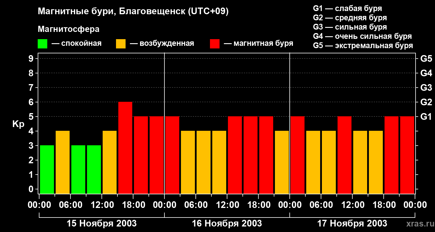 Магнитные бури в Благовещенске — 17 ноября 2003 года