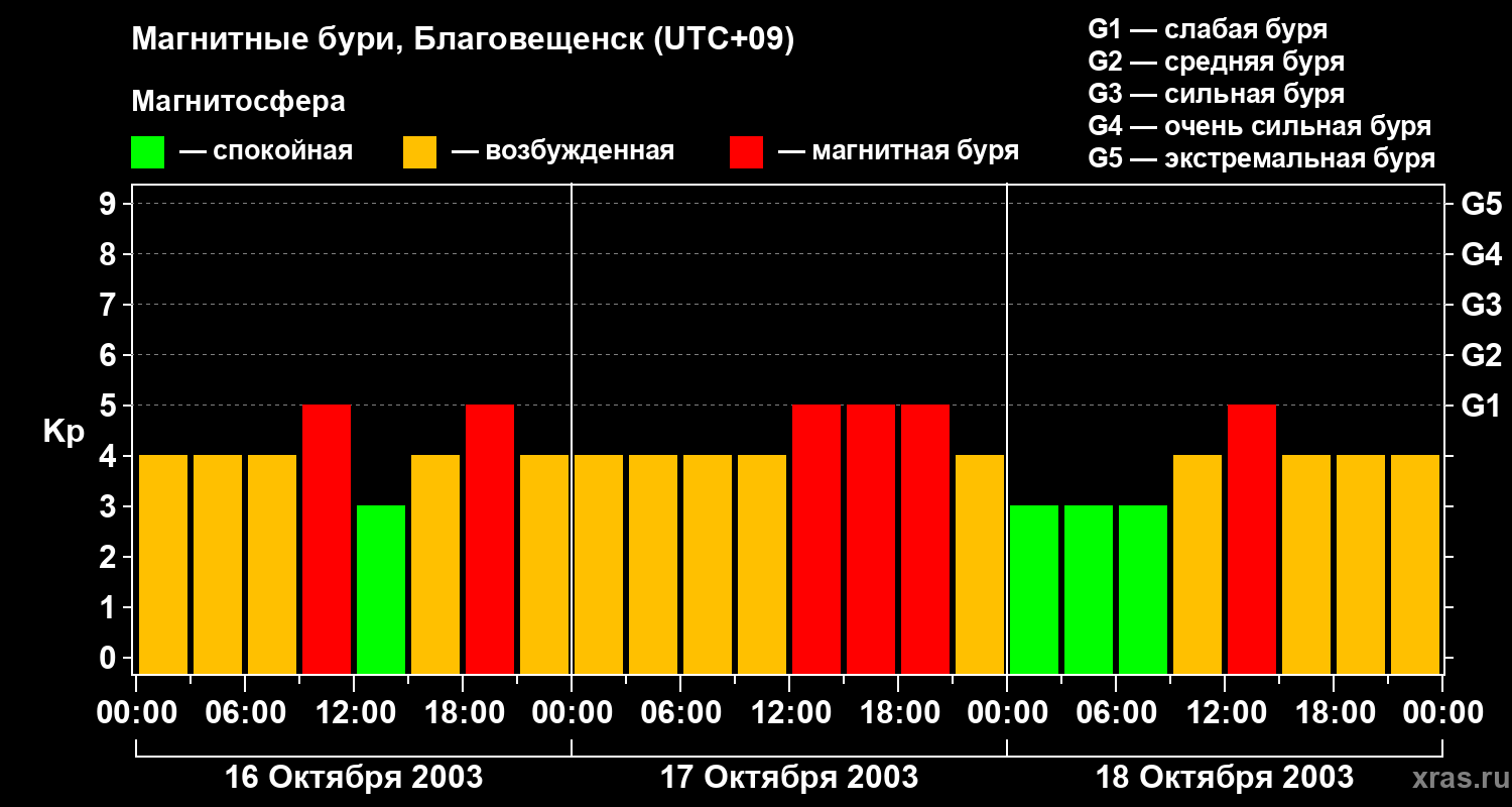 Магнитные бури в Благовещенске — 18 октября 2003 года