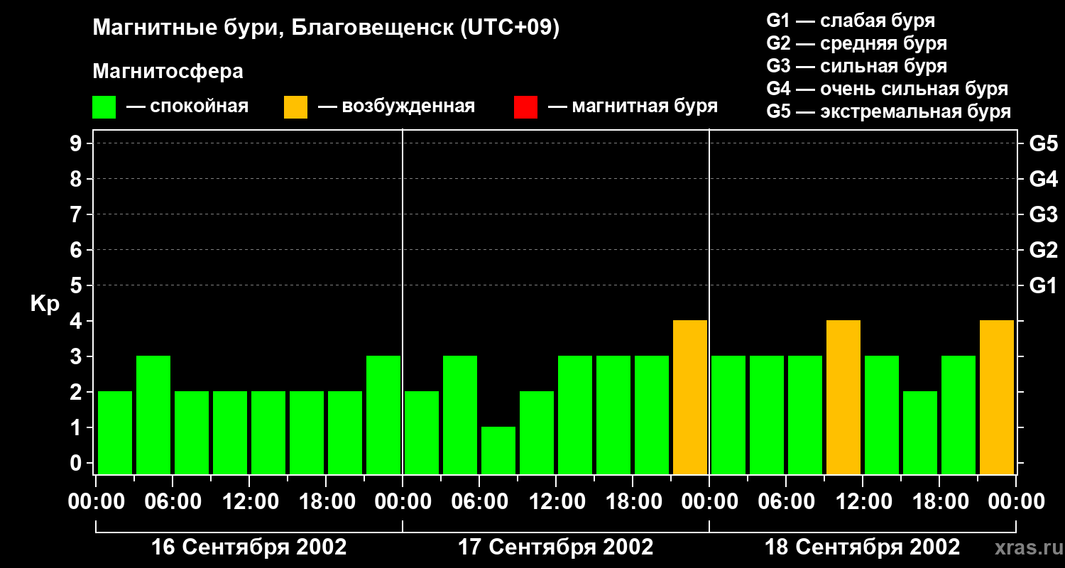 Магнитные бури в Благовещенске в сентябре 2002 года