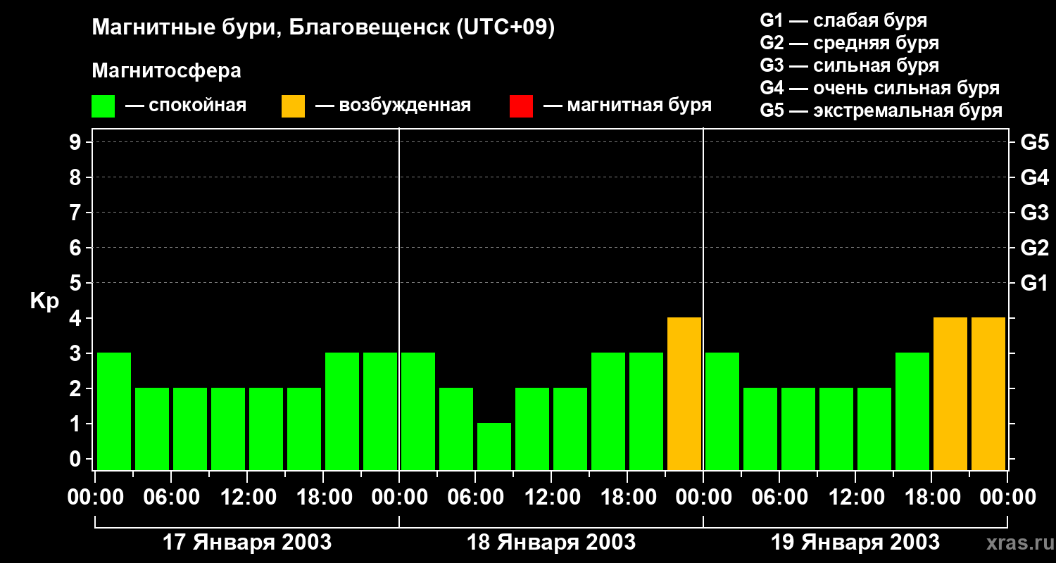 Магнитные бури в Благовещенске — 19 января 2003 года