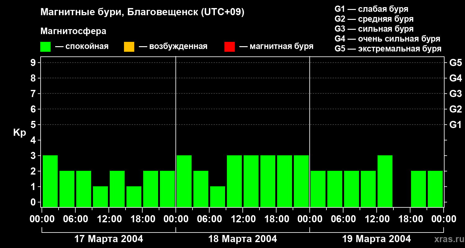 Магнитные бури в Благовещенске — 19 марта 2004 года