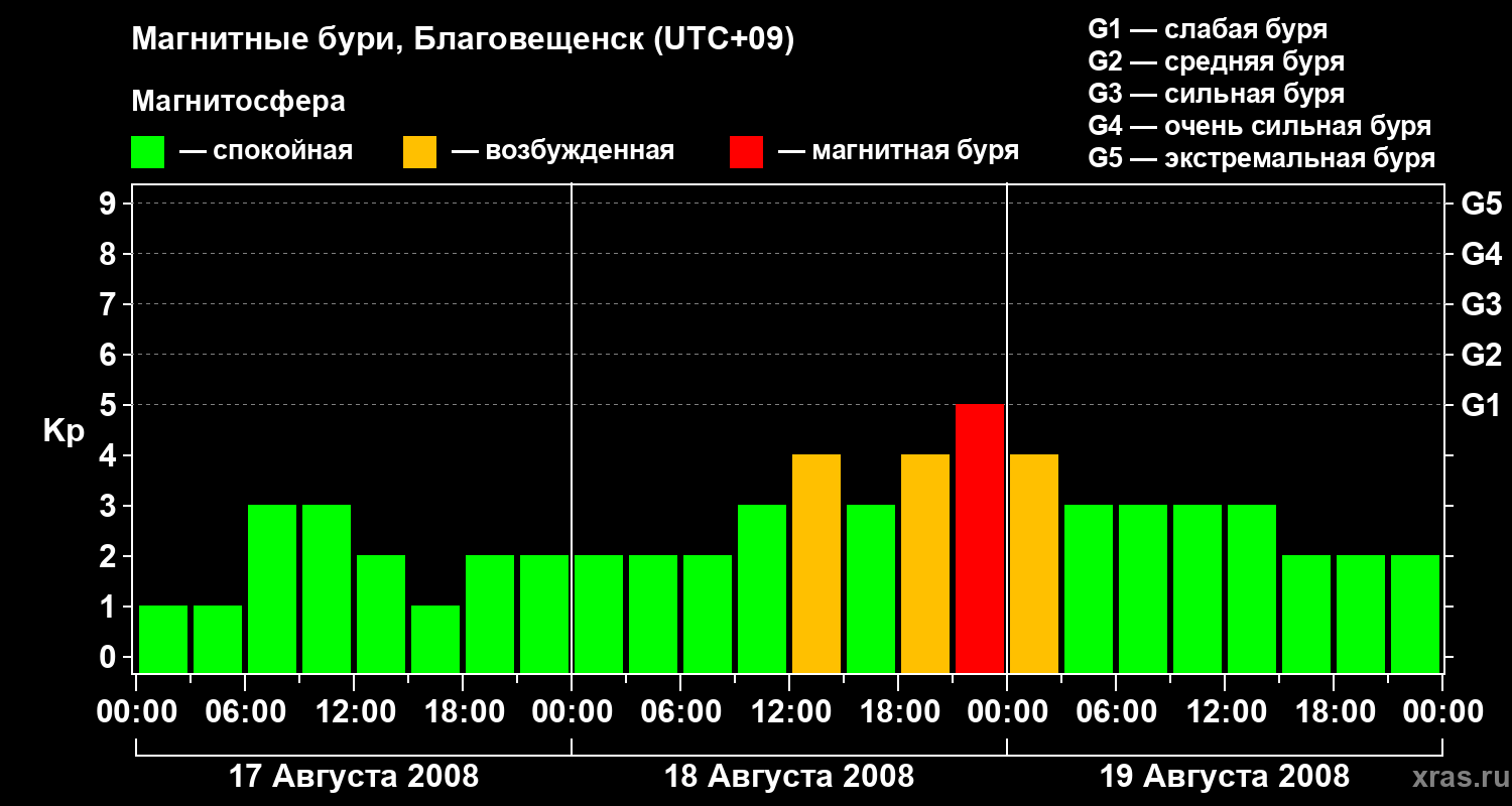 Магнитные бури в Благовещенске — 19 августа 2008 года