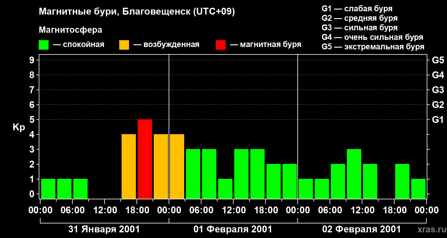 Магнитные бури в Благовещенске — 2 февраля 2001 года