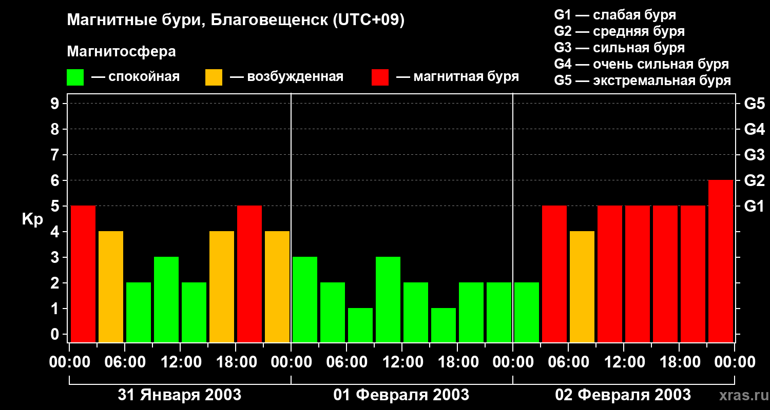 Магнитные бури в Благовещенске — 2 февраля 2003 года