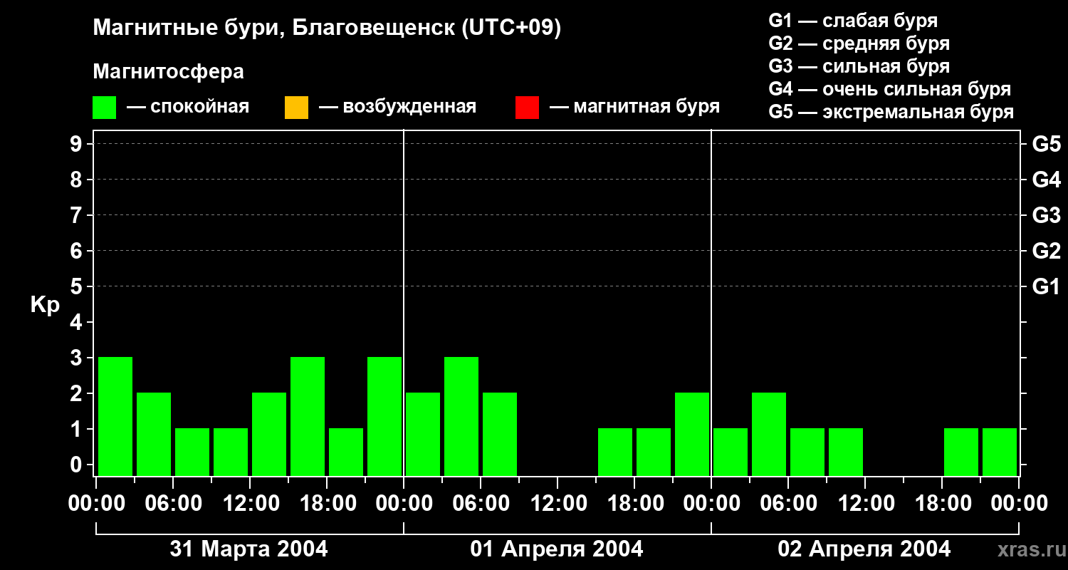 Магнитные бури в Благовещенске — 2 апреля 2004 года