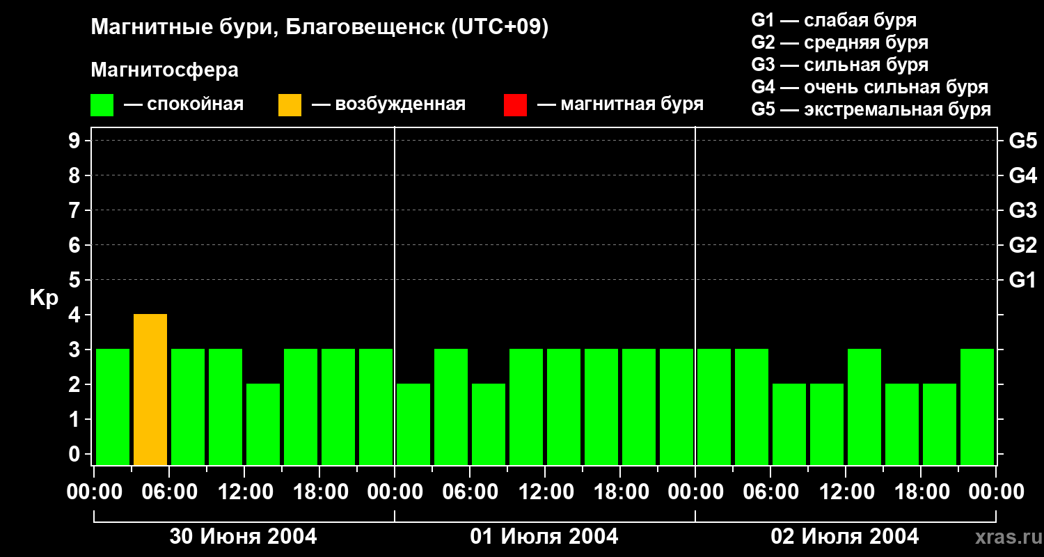 Магнитные бури в Благовещенске — 2 июля 2004 года