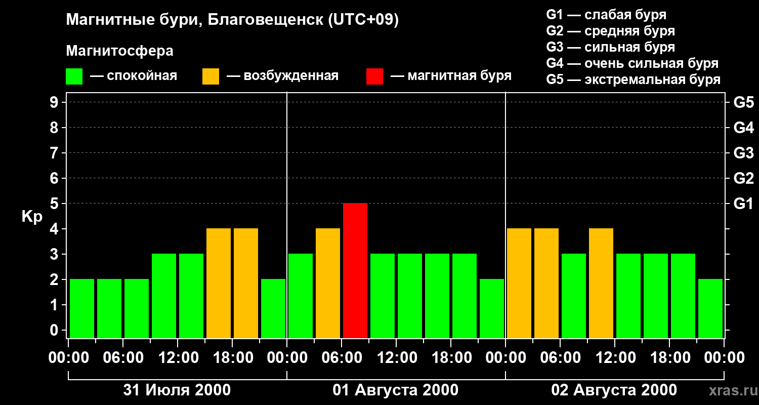 Магнитные бури в Благовещенске — 2 августа 2000 года