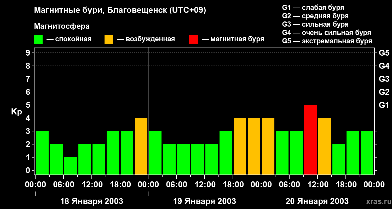 Магнитные бури в Благовещенске — 20 января 2003 года