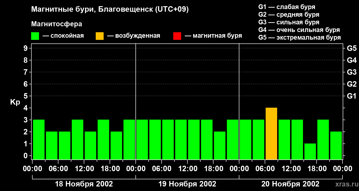 Магнитные бури в Благовещенске — 20 ноября 2002 года