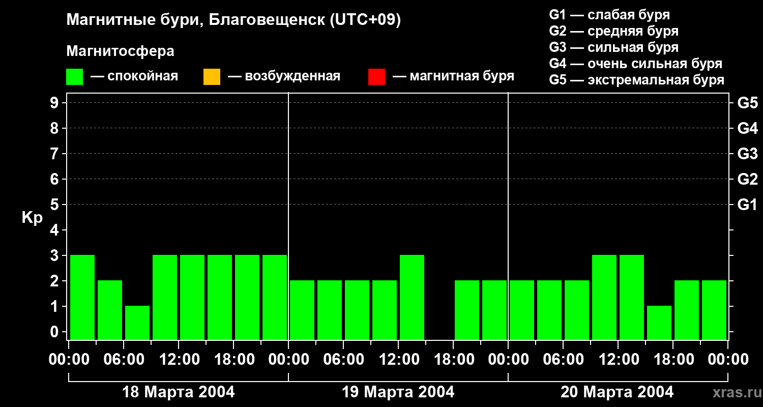 Магнитные бури в Благовещенске — 20 марта 2004 года