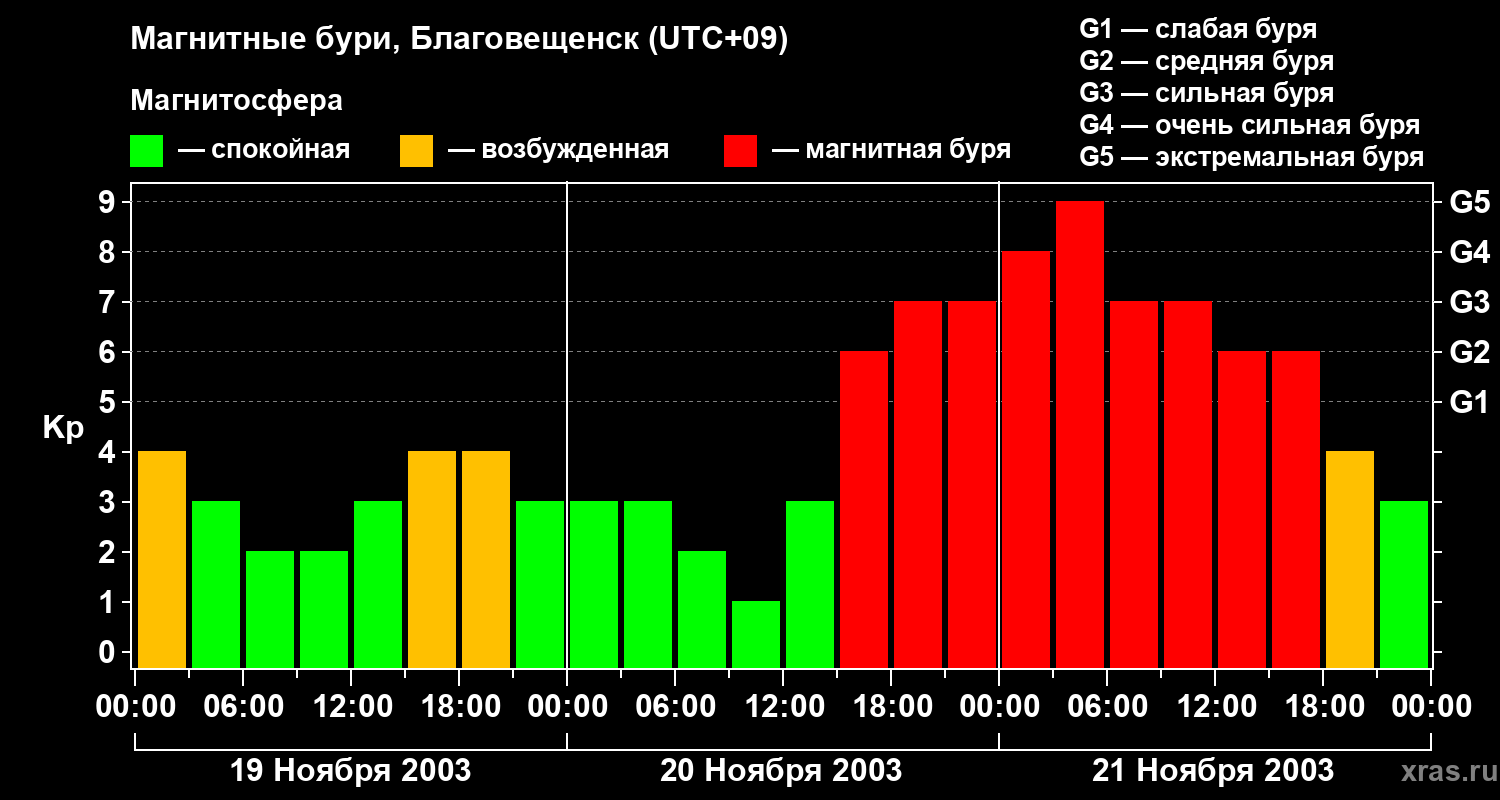 Магнитные бури в Благовещенске — 21 ноября 2003 года